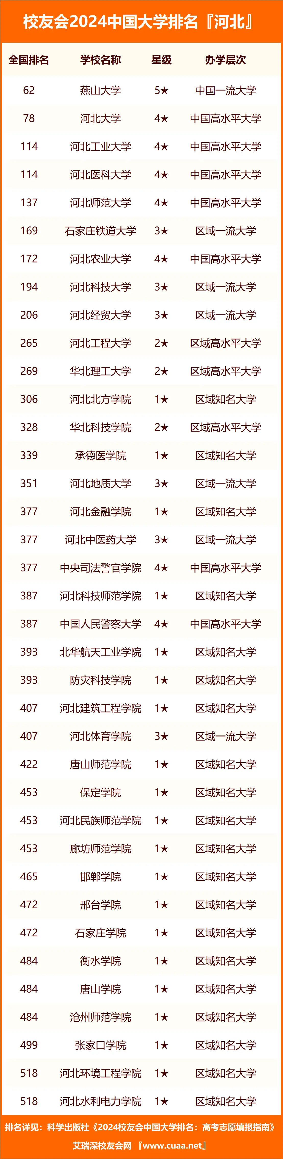 以下为中国37所河北的公办本科大学最新排行榜一览表: