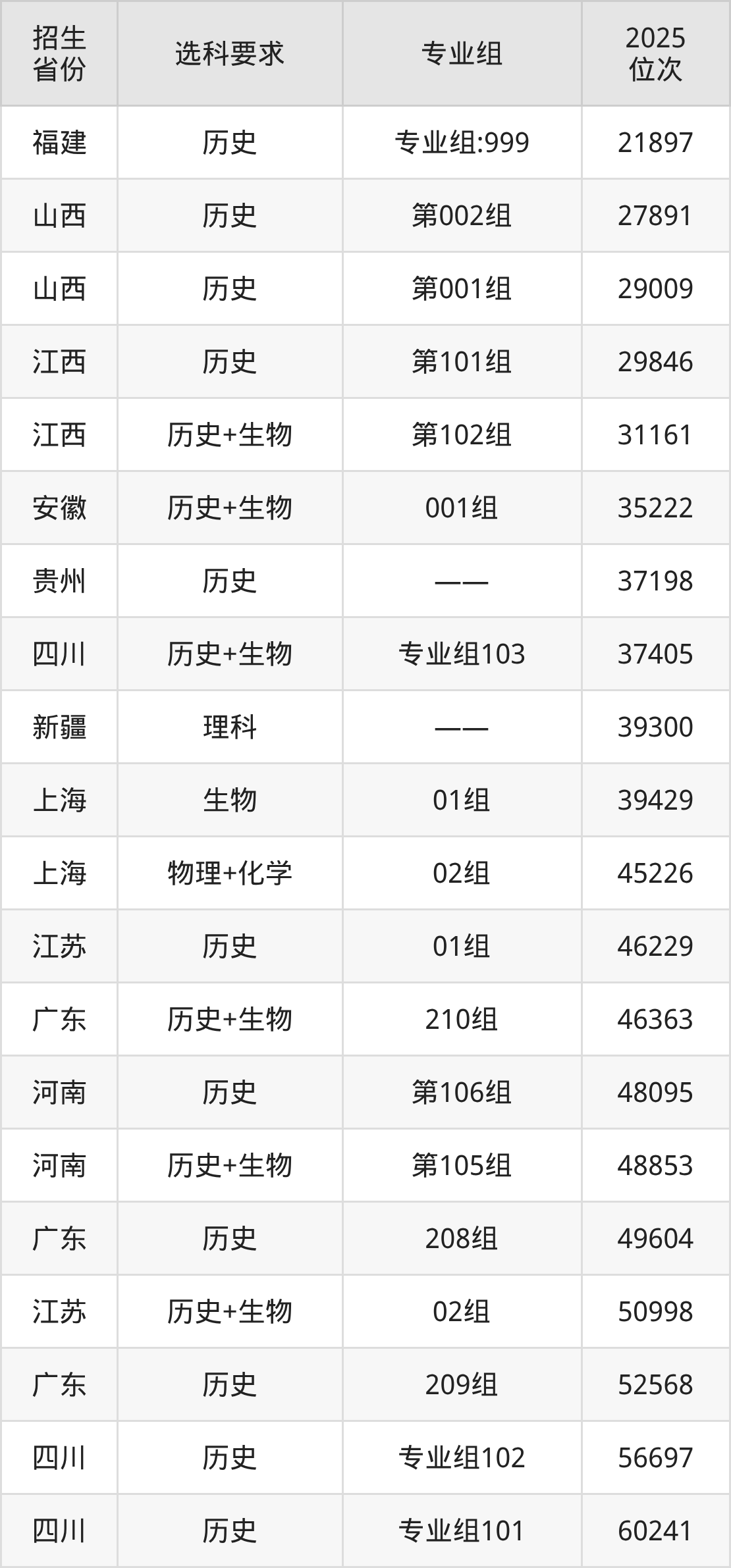 南京医科大学康达学院2025年在全国各省的位次差异较大,最高位次是21897位(福建历史类)、最低位次是305015位(山东)。各省具体位次请看下图: