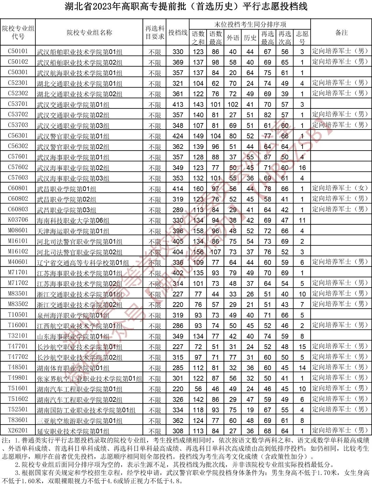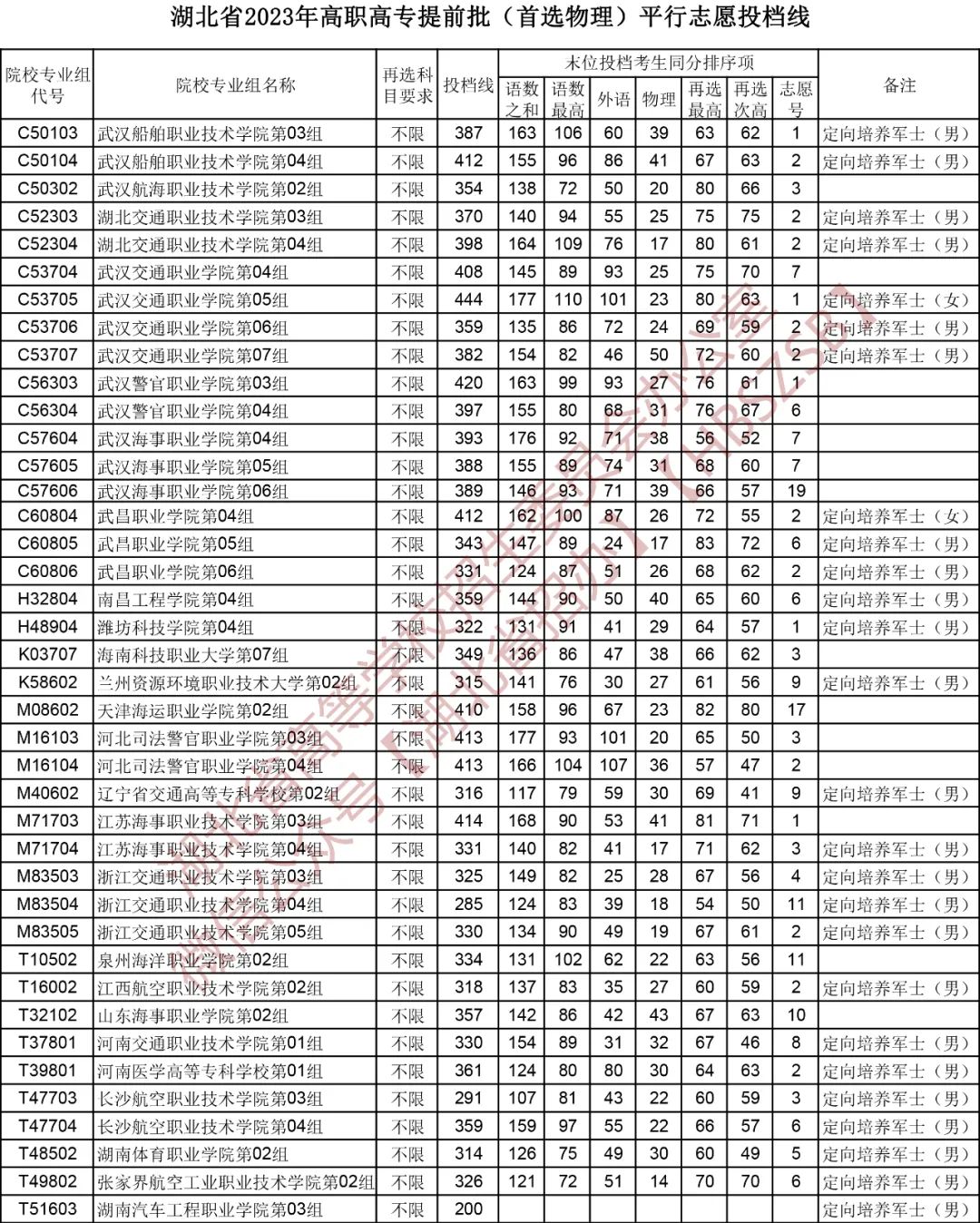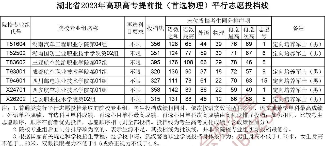 一、湖北定向士官录取分数线2023汇总
