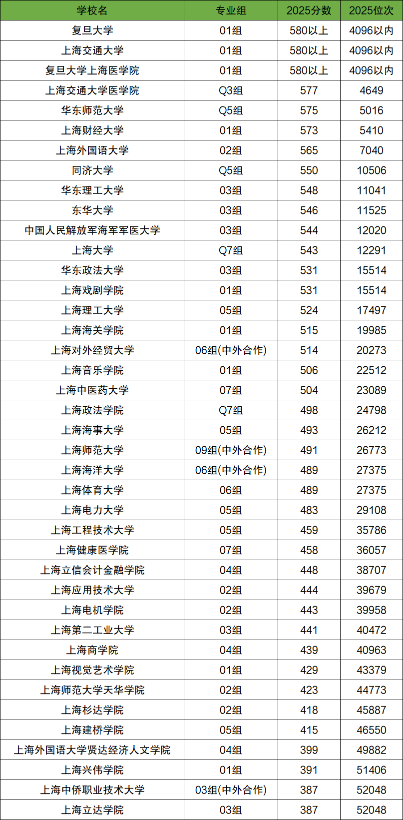 关于更多院校上海本科的分数线及位次排名,本文都进行了整理,供查阅。