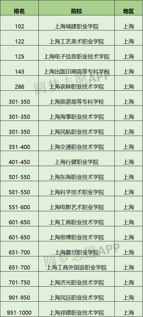 以下为2023年上海市所有专科学校排名。