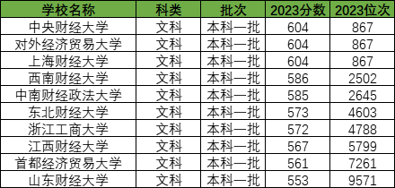 十大财经大学2023年在四川文科的录取分数区间在553分-604分,都是本科一批录取,其中,中央财经大学、对外经济贸易大学、上海财经大学的录取分数都是604分,剩下的财经大学录取分数都在600分以下,录取分数最低的是山东财经大学大学553分。