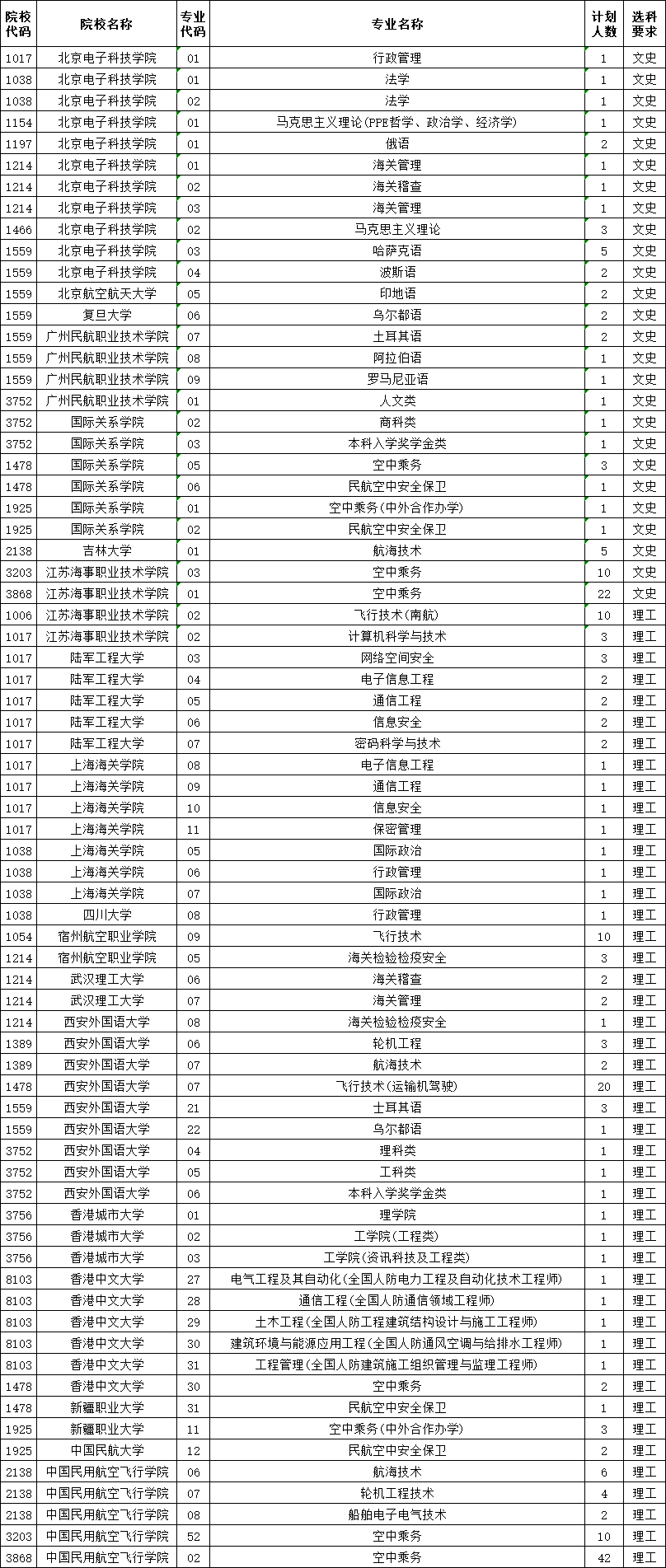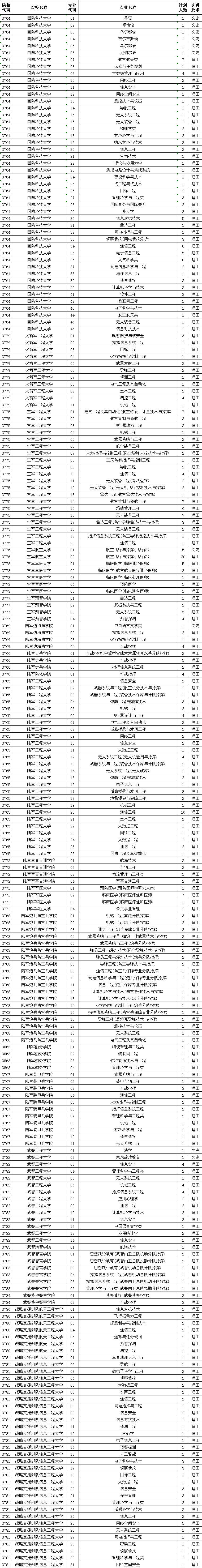 院校名单:国防科技大学、火箭军工程大学、空军工程大学、空军航空大学、空军军医大学等。