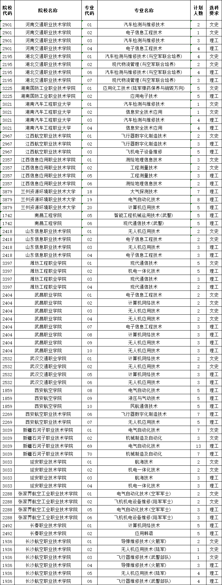 院校名单:河南交通职业技术学院、湖北交通职业技术学院、湖南国防工业职业技术学院、湖南汽车工程职业大学、江西航空职业技术学院等。
