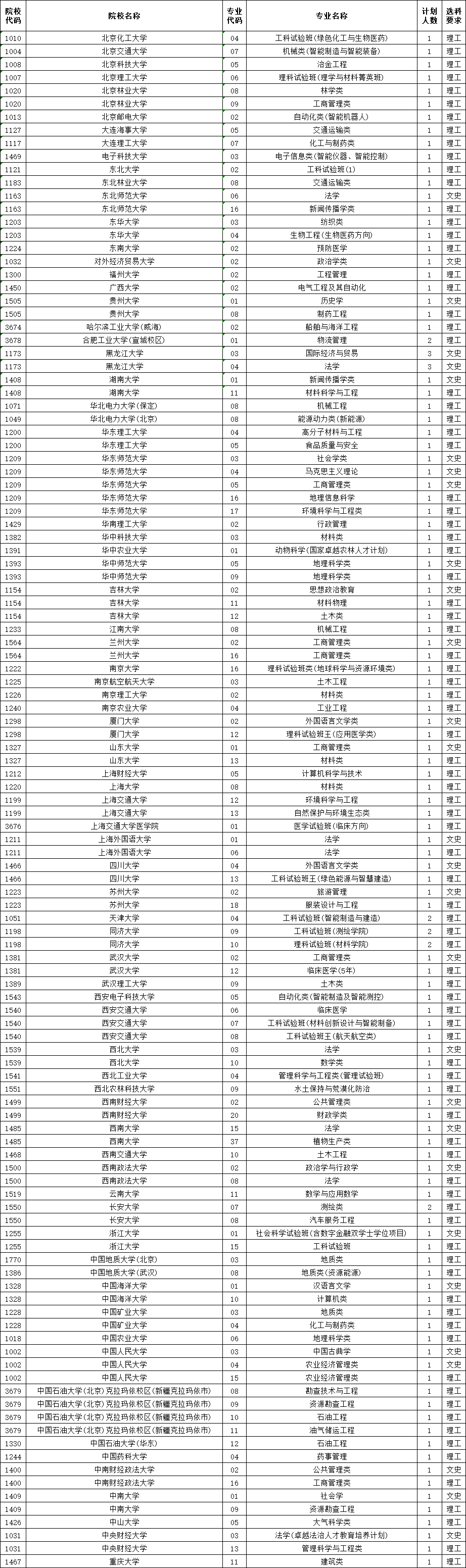 专业名单:信息安全、土木工程、经济学类、行政管理、生物科学类等。