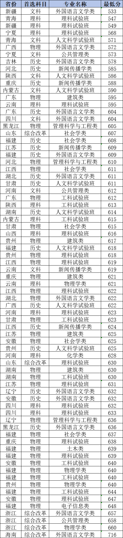 2024年厦门大学高校专项计划各省录取最低分一览表: