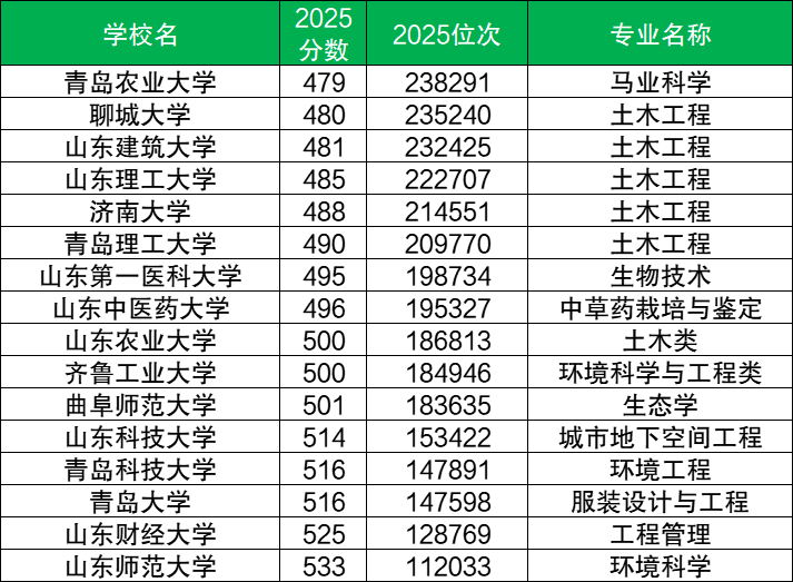 下面为大家列举2025年山东地方专项计划招生院校分数情况: