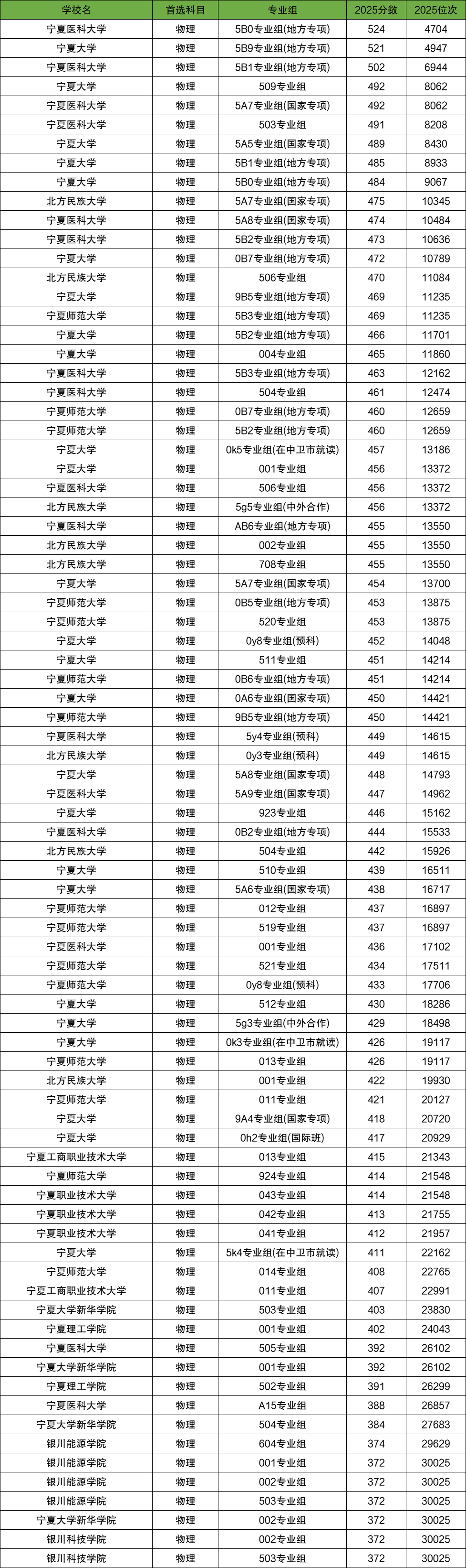 本文使用2025年宁夏回族自治区物理类录取数据,整理的宁夏内所有大学分数线。