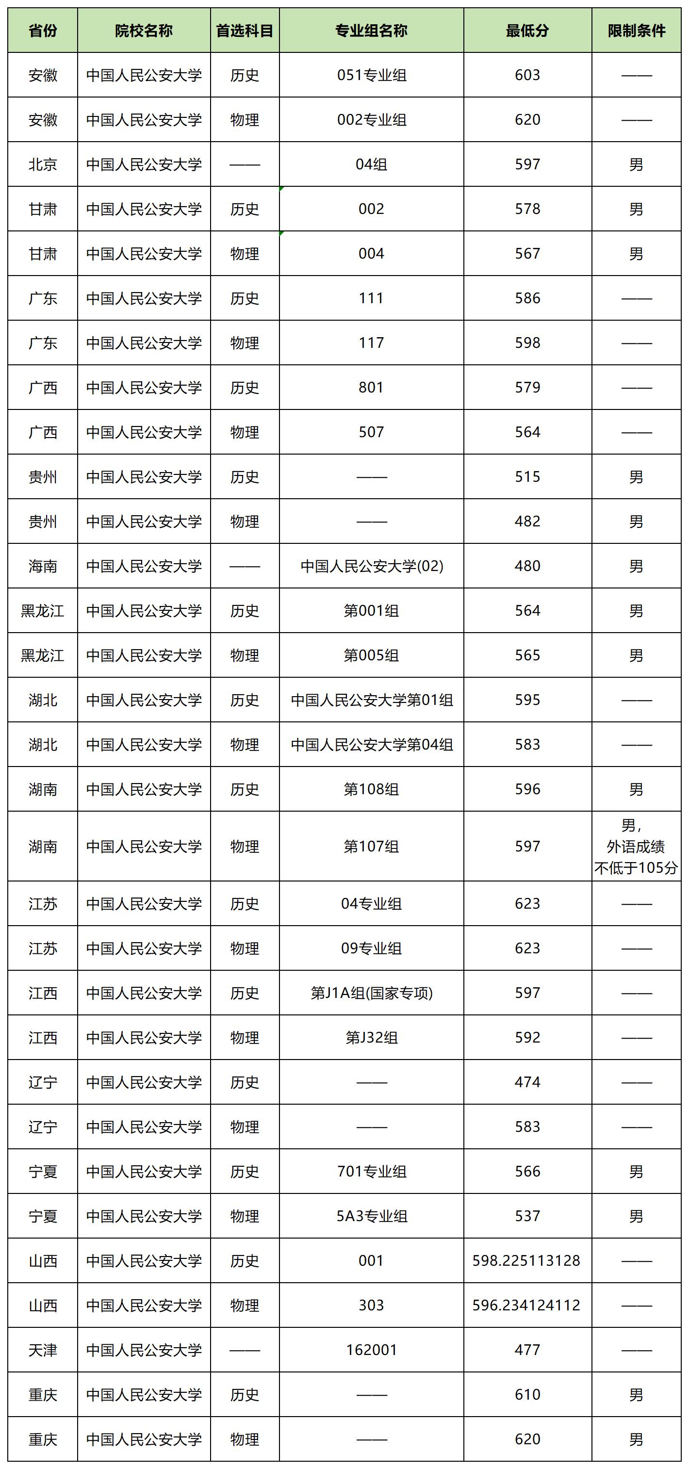 2025年中国人民公安大学在北京招生最低分为597分(综合改革,男生);
