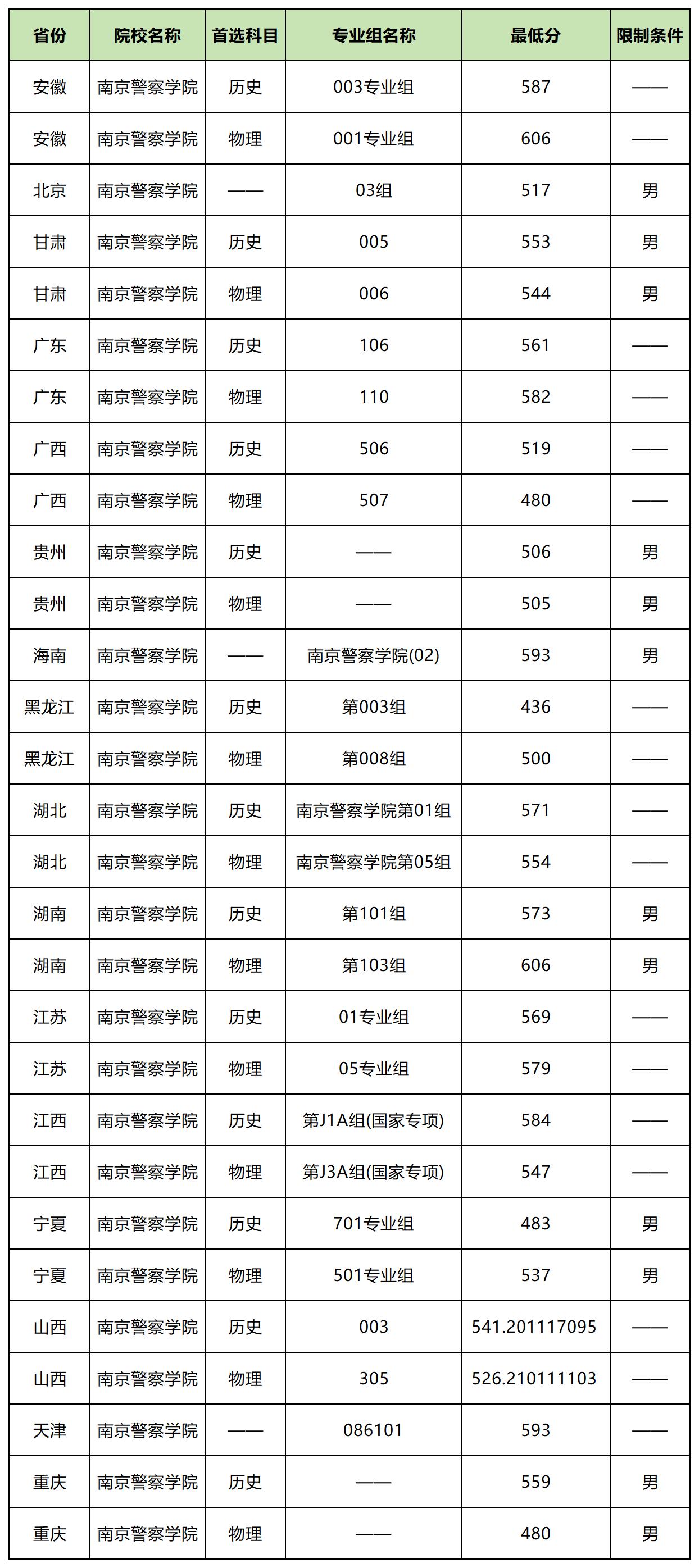 2025年南京警察学院在安徽省招生最低分为587分(历史类);