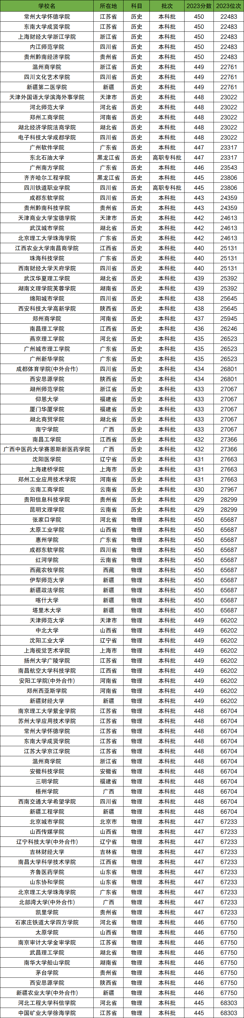 历史类共计157所,物理类共计288所,本文篇幅有限,上表只列举100所大学。