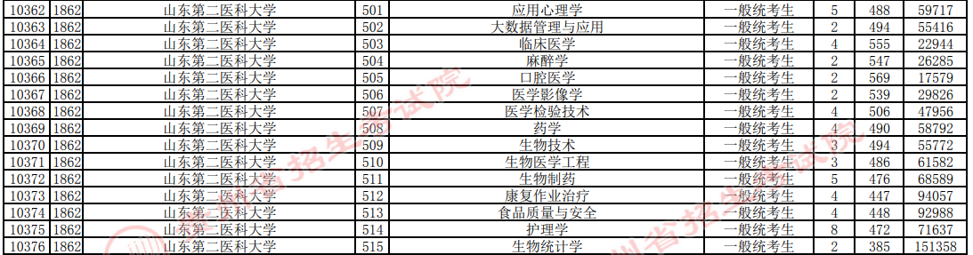 山东第二医科大学2024年录取分数线一览表