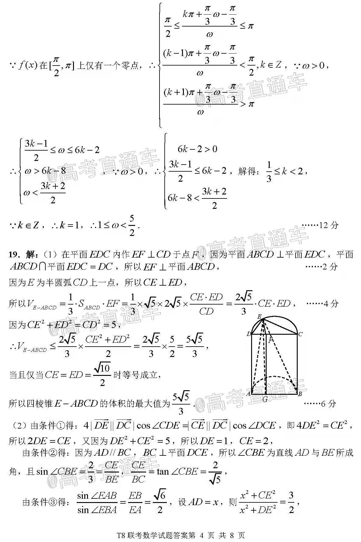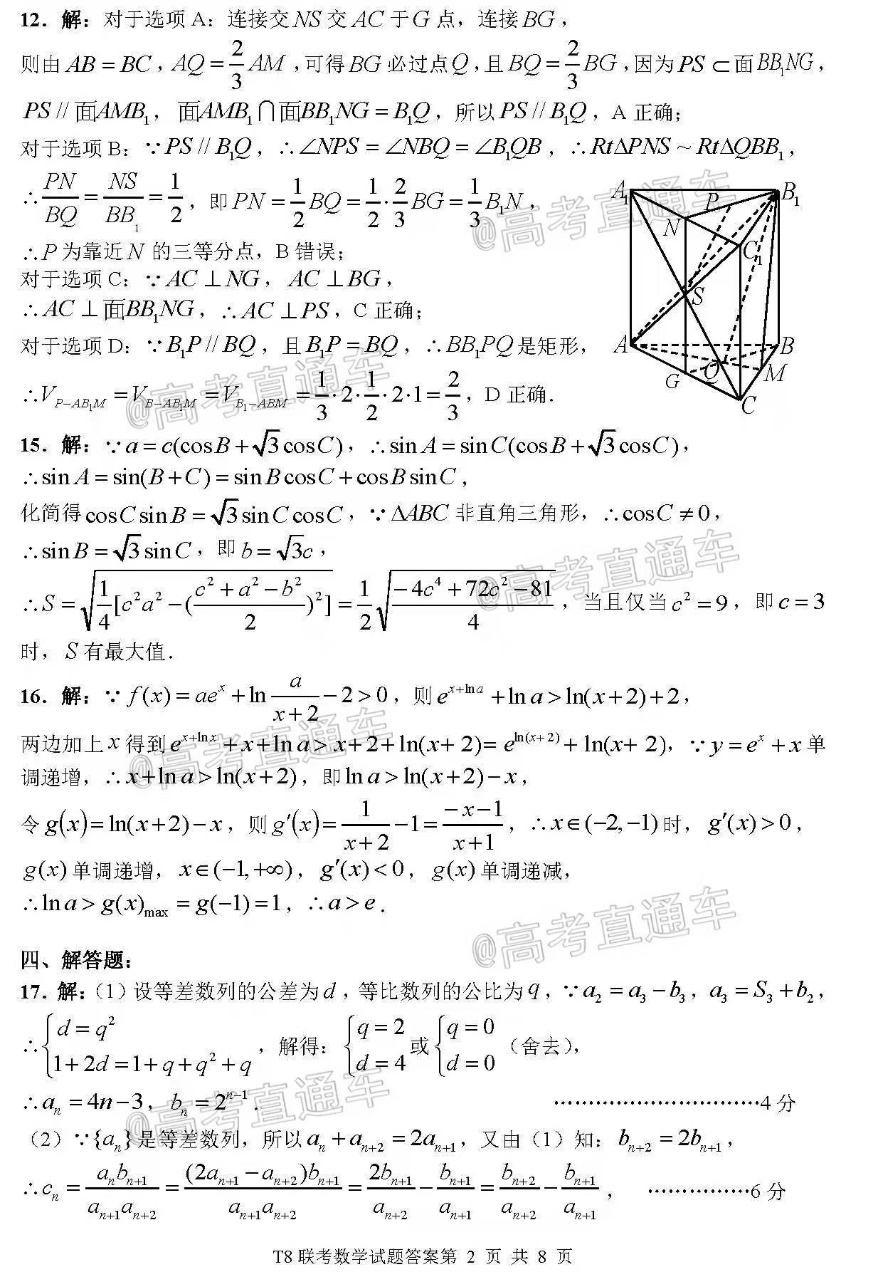 2022届高三八省(市)学业质量评价联考(T8联考)——数学