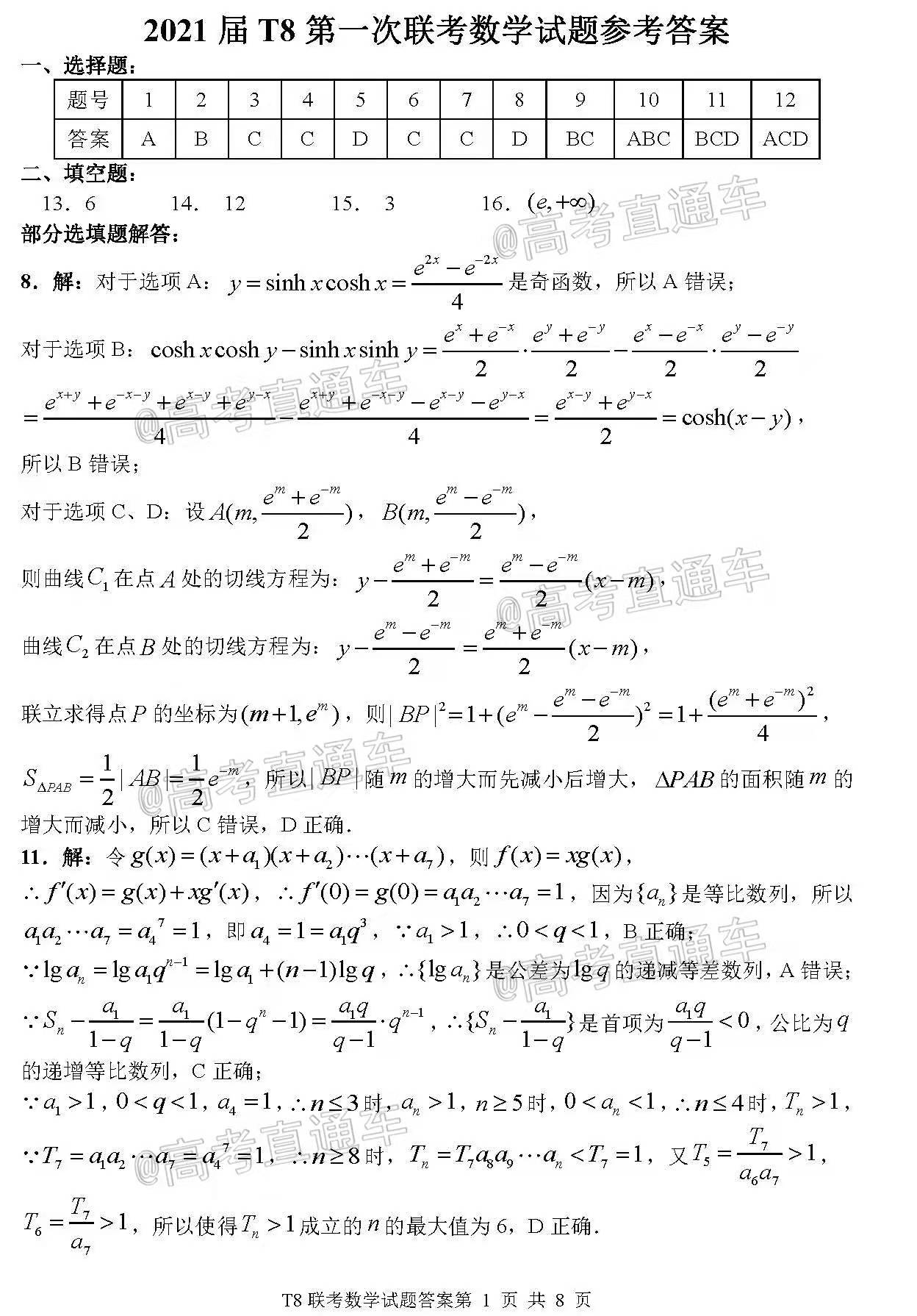 T8联考,2021年也有安排,是在八省联考前由新高考省市的八所重点中学组织的一场跨校联考,试题含金量极高,值得参考。