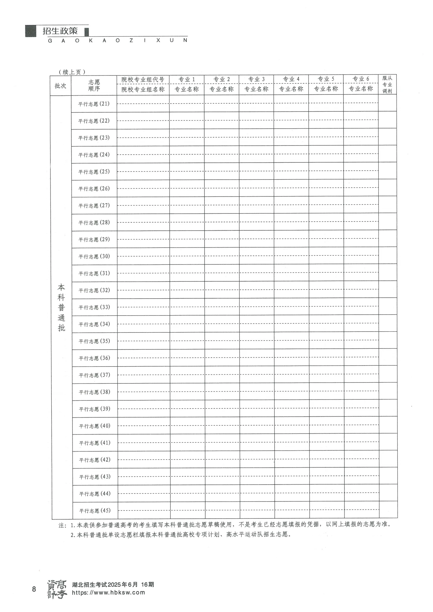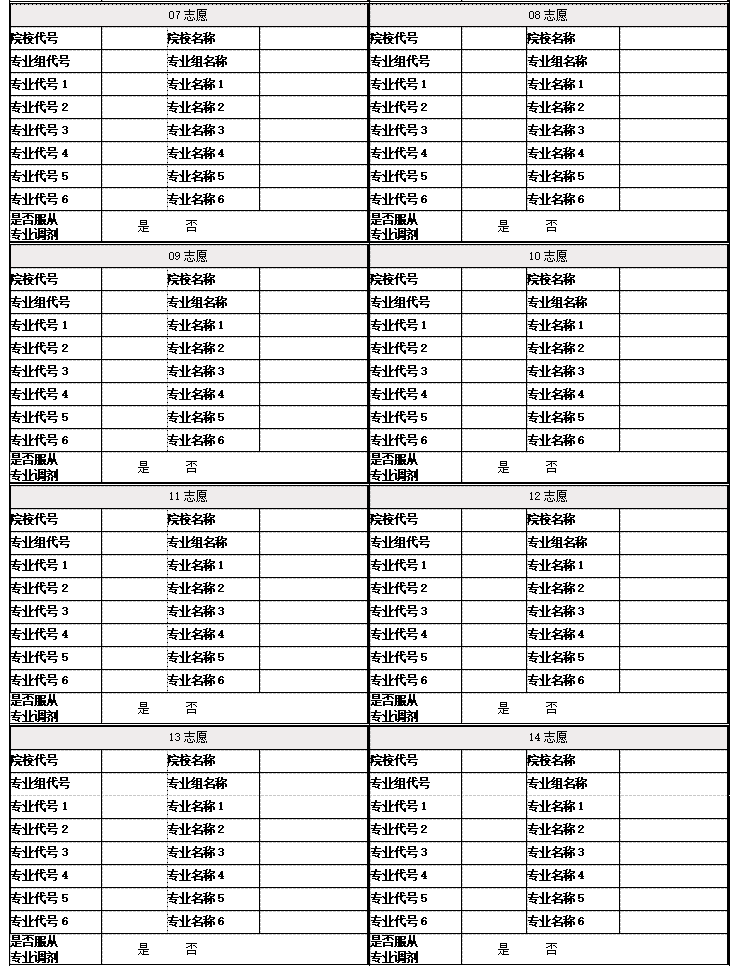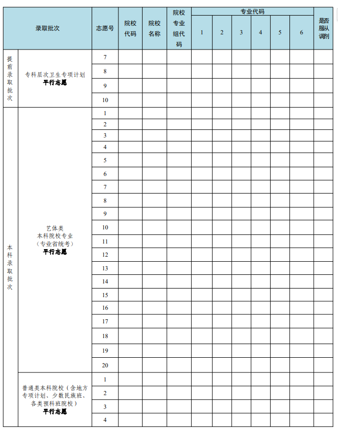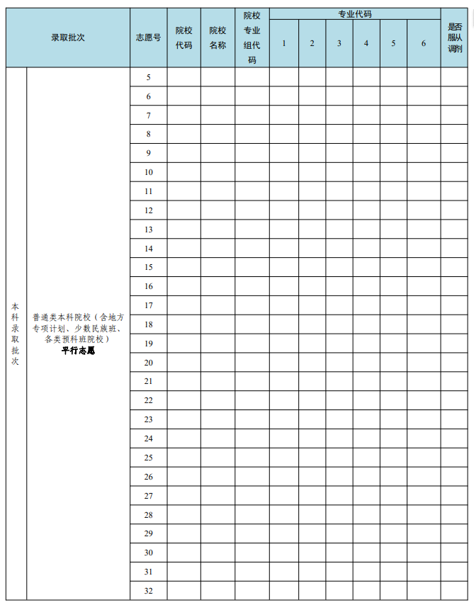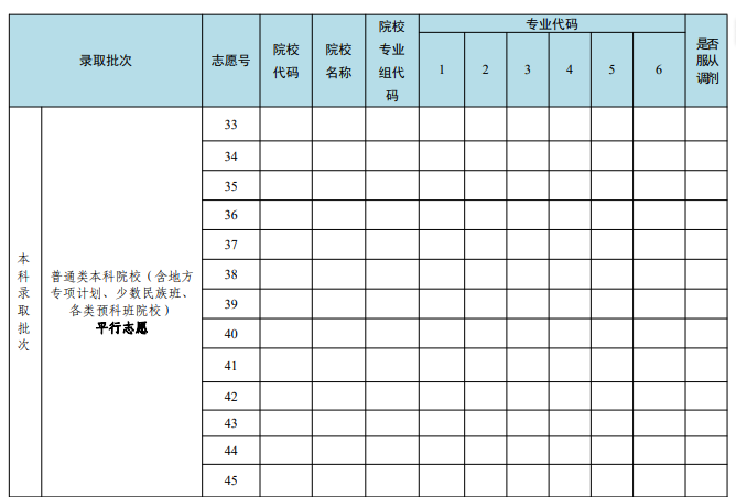本科批、高职(专科)批都是48个院校专业组平行志愿。每个志愿组最多可填6个专业。