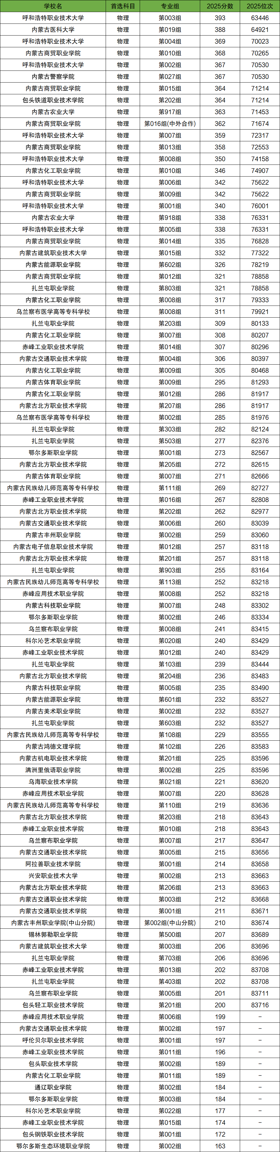 本文使用2025年内蒙古物理类录取数据,整理的内蒙古所有大学分数线。