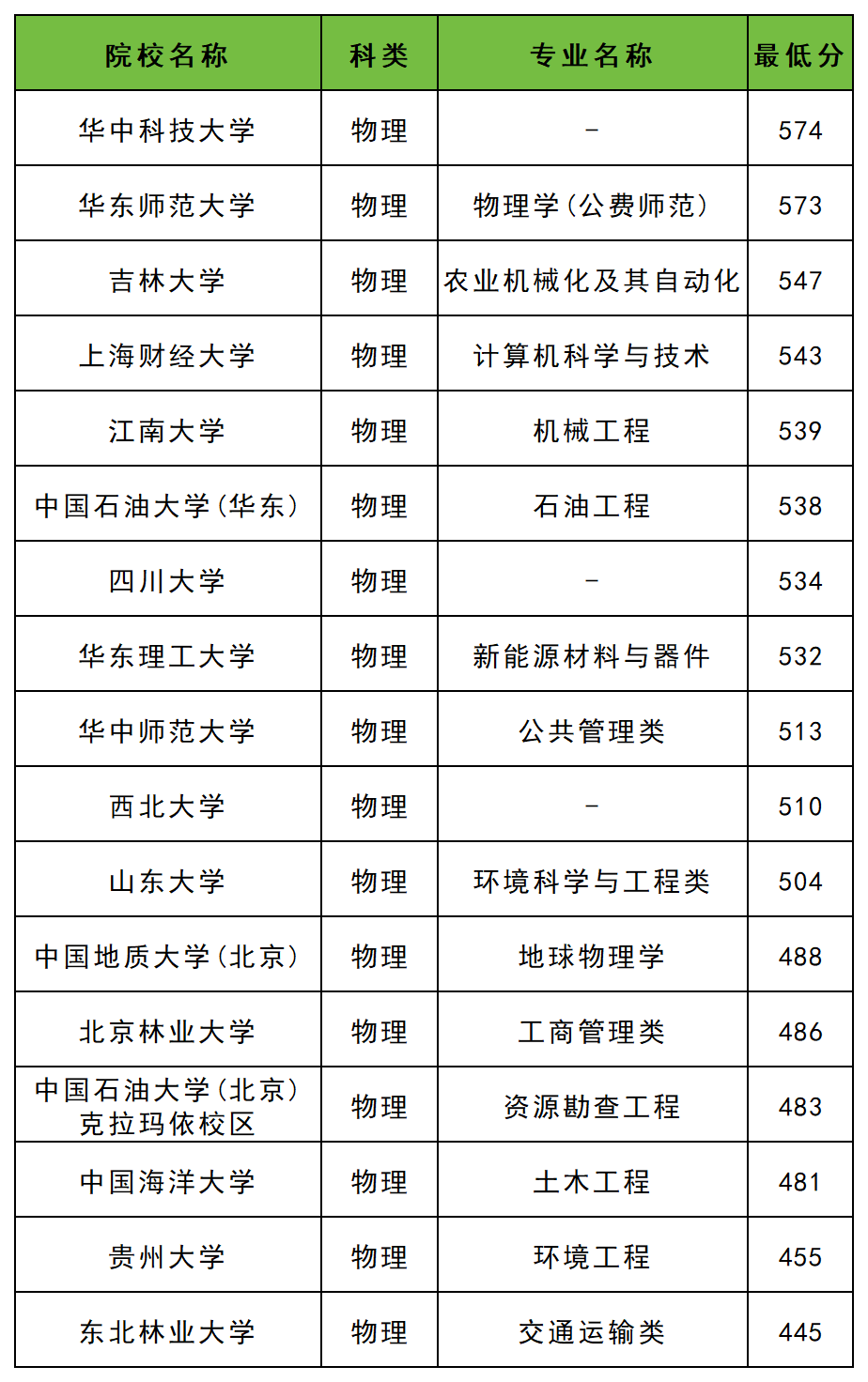 2025年宁夏高校专项物理类录取分数线位于445分到574分之间,收分最低的是东北林业大学交通运输类专业,收分最高的是华中科技大学,各校各专业具体分数线如下。