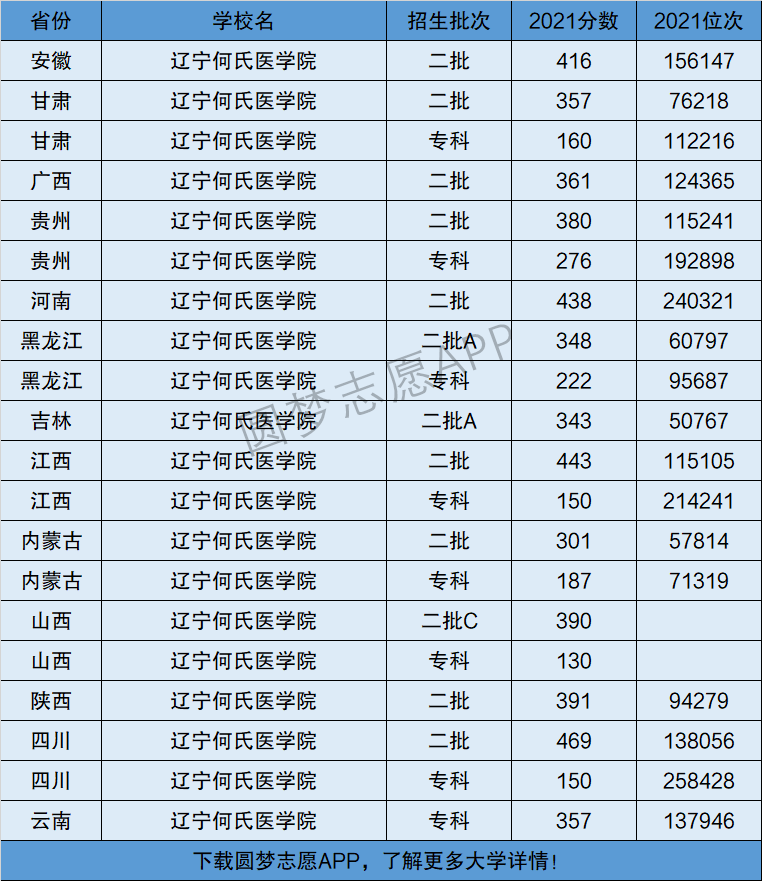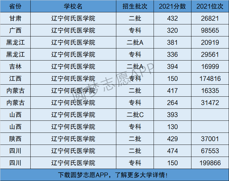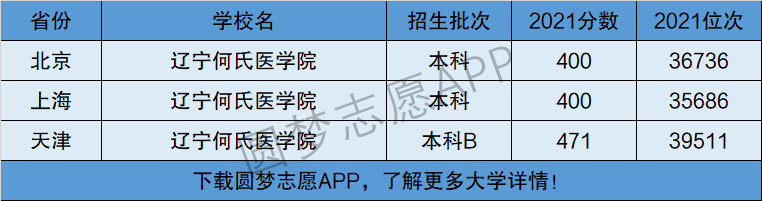 2、辽宁何氏医学院在全国普通高考省份的【理科】招录数据,包含招生批次等信息: