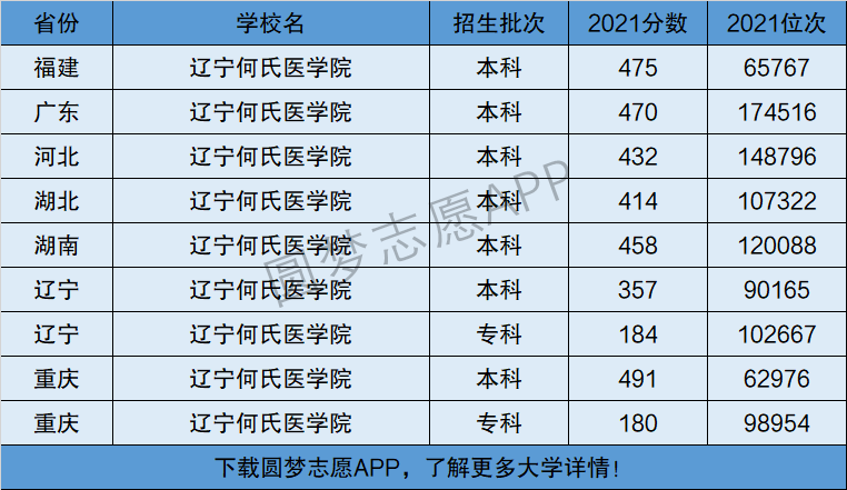 据悉,辽宁何氏医学院2021年高考在全国22个省市均有招生,在其中12个省份为本科二批招生。在其中已经合并了一本二本的10个省份中均为本科批招生。