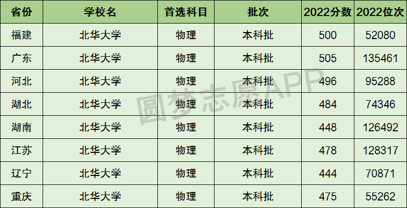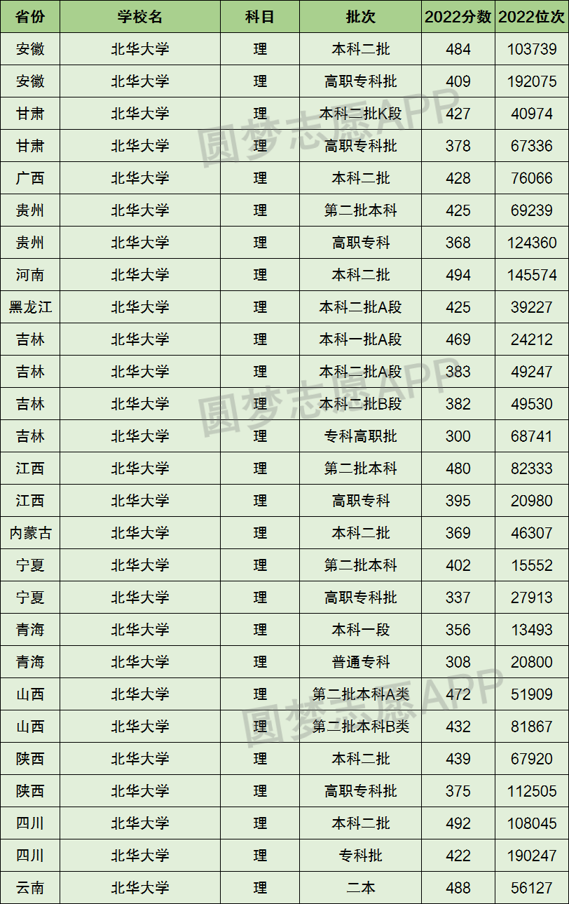 2、北华大学在全国普通高考省份的【理科】招录数据,包含招生批次等信息: