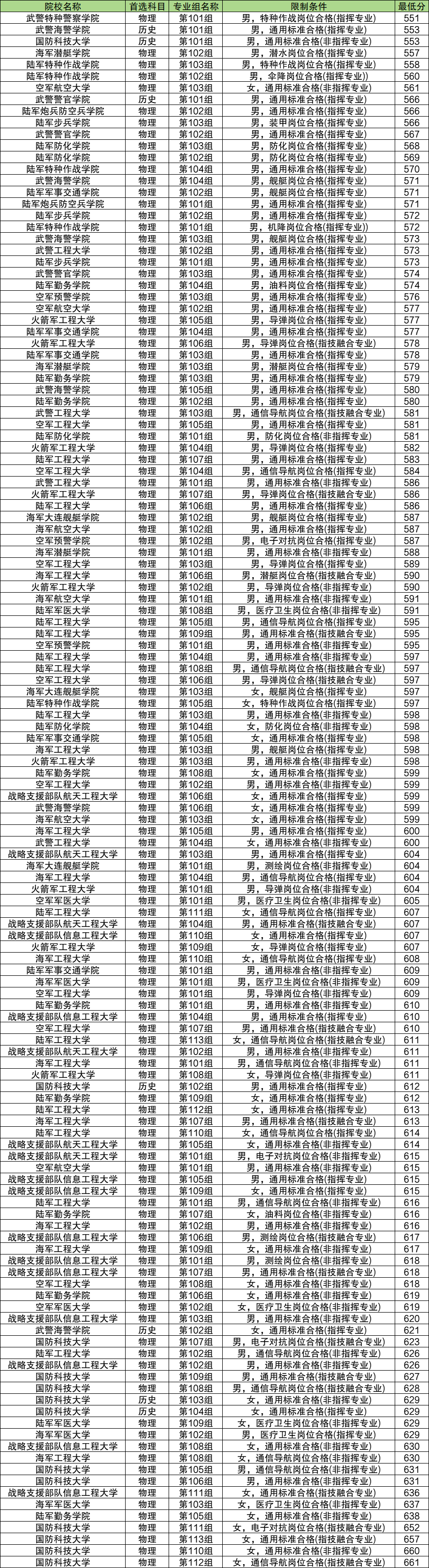 陆军步兵学院:物理类566分;物理类最低分专业组为第103组。