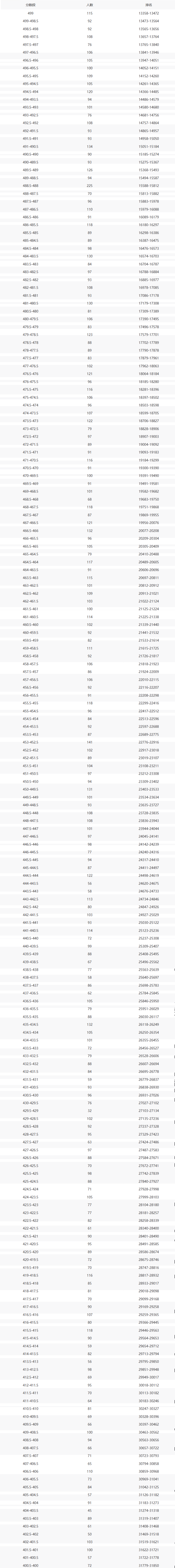 一段线:411分,对应市排名30182名;