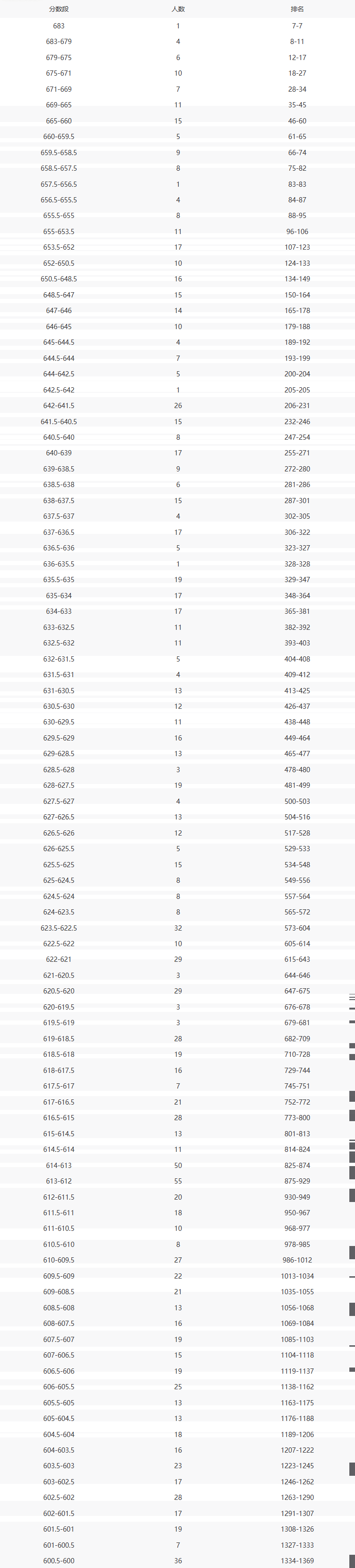 660分:排第60名;