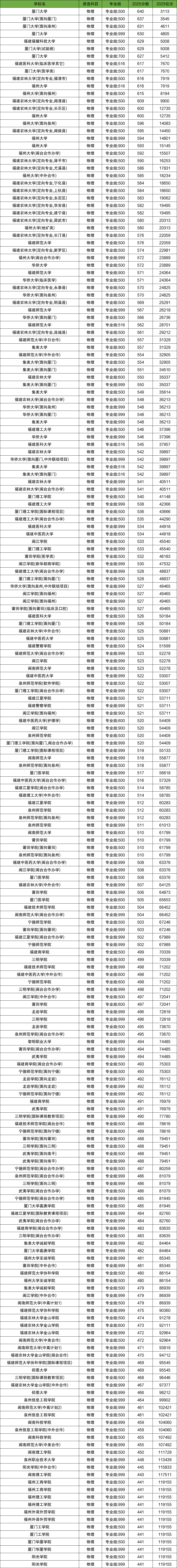 本文使用2025年福建省物理类录取数据,整理的福建省内所有大学分数线。