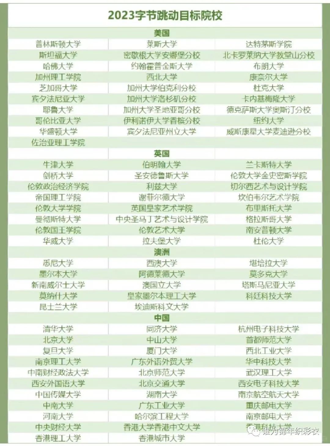 此外,由于字节还有着广阔的海外业务(tiktok),因而对于具有国际视野且懂外语的人才,字节也是很需要的,这也意味着对于一些海外名校的毕业生,字节也会有一定的招聘,而且相较于其他的大厂,字节招聘这类学生的数量会更多。在此,小编整理了字节2023年招聘的完整目标院校名单(包含海外院校),详情如下: