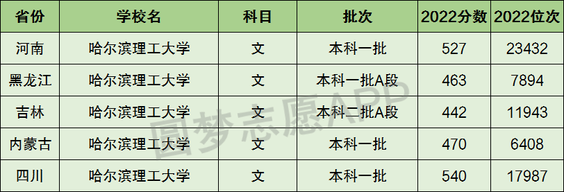 1、哈尔滨理工大学在全国普通高考省份的【文科】招录数据,包含招生批次等信息: