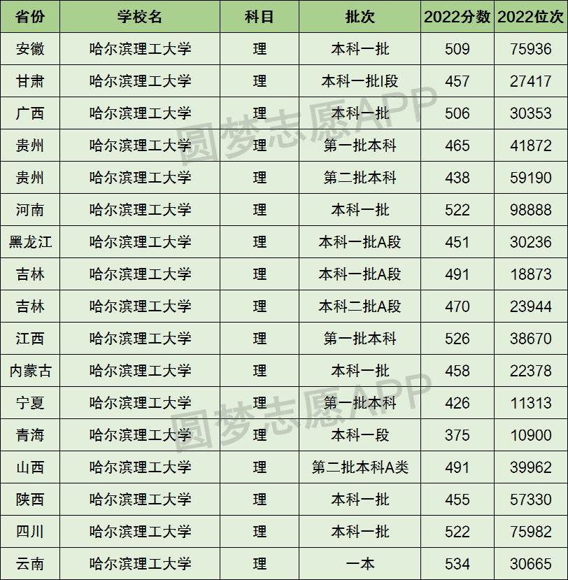 2、哈尔滨理工大学在全国普通高考省份的【理科】招录数据,包含招生批次等信息:
