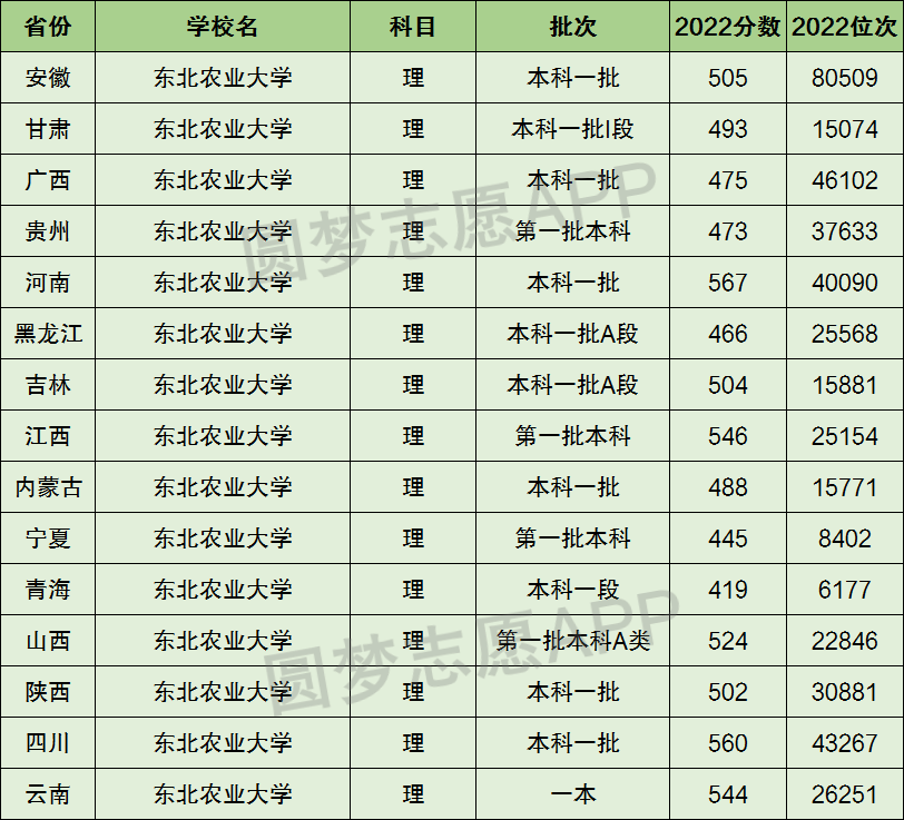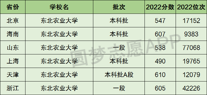 下面圆梦志愿将为大家展示东北农业大学2022年在全国各省市的最低分数线和位次,大家可以在了解东北农业大学在全国各省详细招生批次的同时,也顺便看看东北农业大学的招生录取分数线是多少!