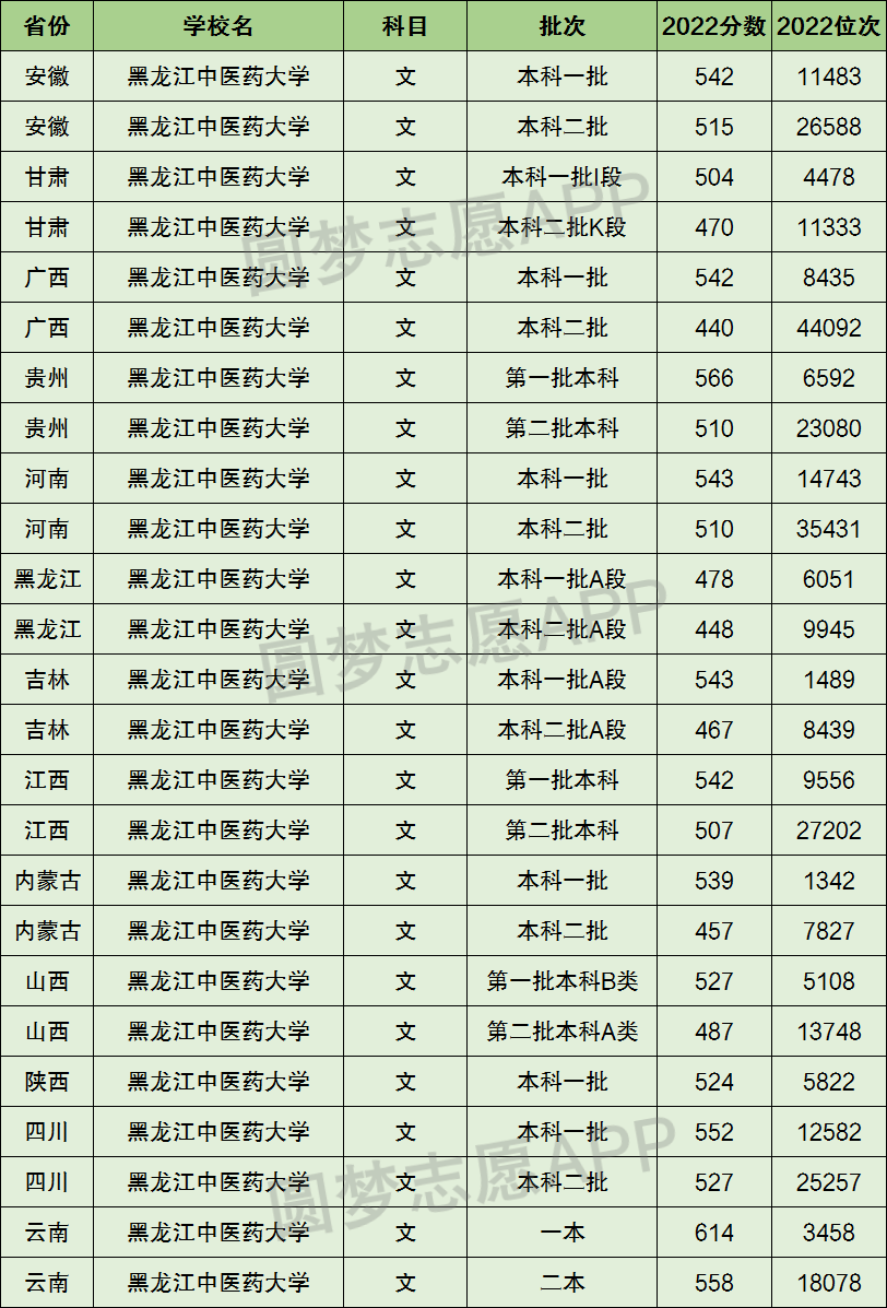 1、黑龙江中医药大学在全国普通高考省份的【文科】招录数据,包含招生批次等信息: