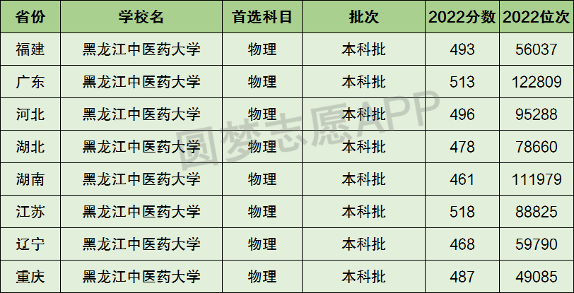 5、黑龙江中医药大学在3+1+2新高考省份【首选物理】的招录数据,招生批次为本科批: