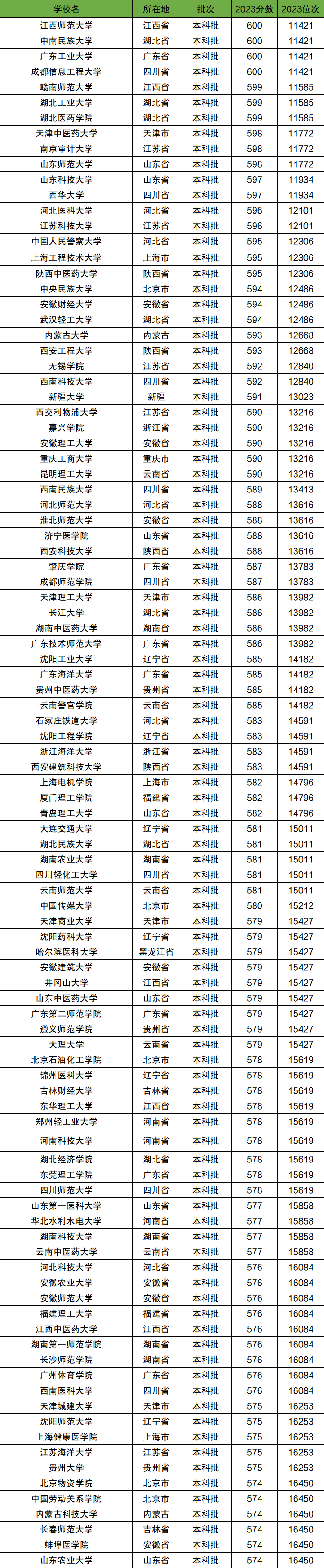 下表为2023年全国大学在海南高考中,录取位次在22023的大学名单。