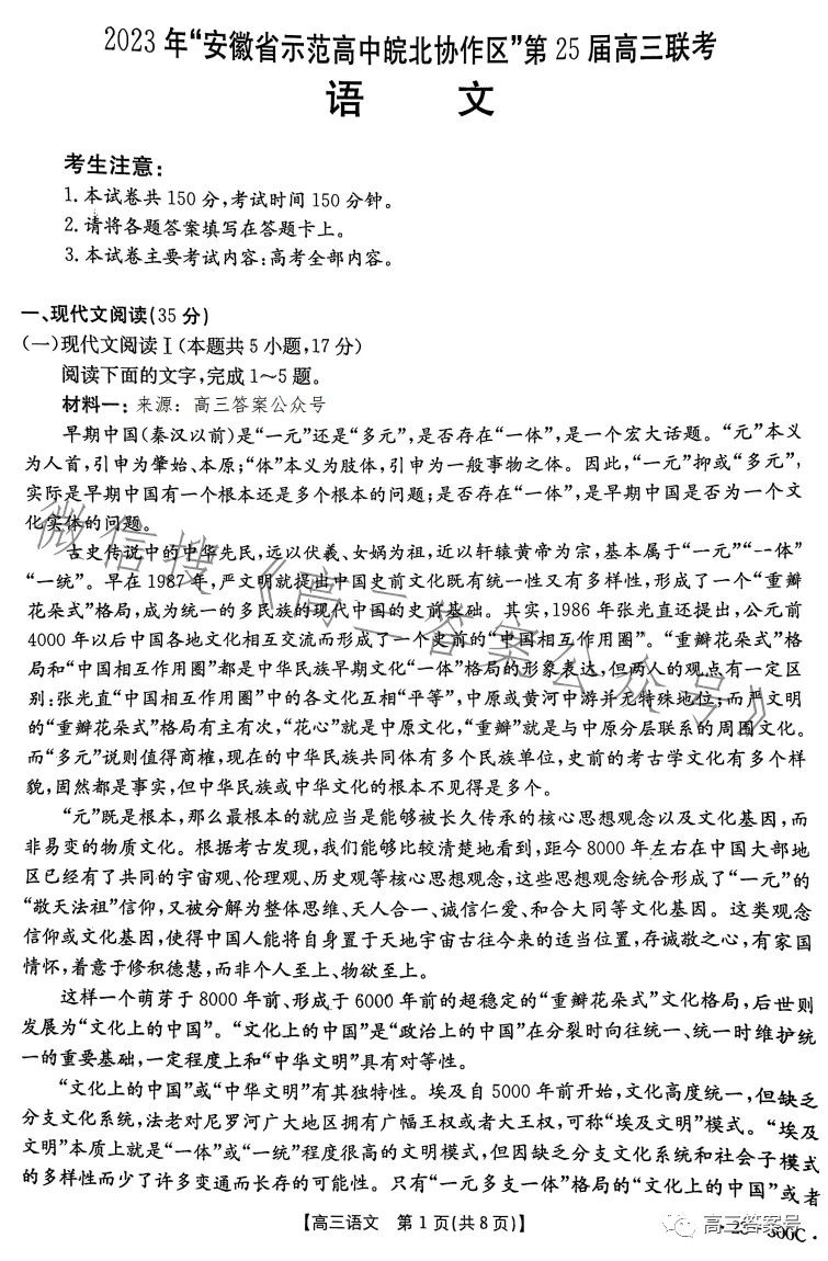 2023皖北协作区联考安排在3月30日举行,在安徽皖北协作区高三联考结束后,本期将整理2023皖北区协作高三联考语文试题及参考答案,希望同学们通过2023皖北协作区联考语文答案及试题这份资料,及时知晓成绩!