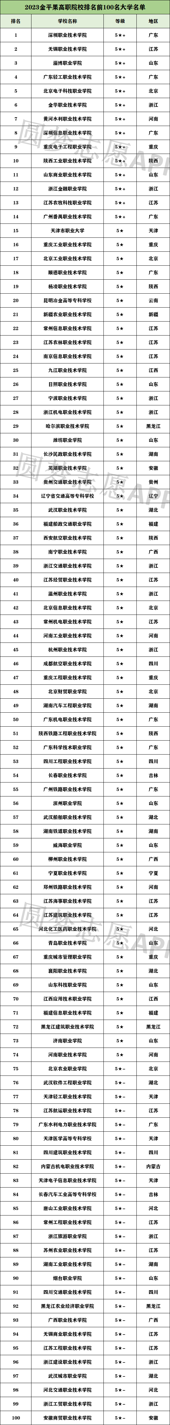 二、全国专科院校排名前100强名单