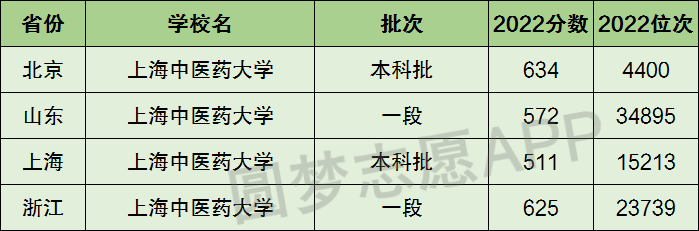 下面圆梦志愿将为大家展示上海中医药大学2022年在全国各省市的最低分数线和位次,大家可以在了解上海中医药大学在全国各省详细招生批次的同时,也顺便看看上海中医药大学的招生录取分数线是多少!