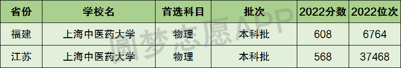 3、上海中医药大学在3+1+2新高考省份【首选物理】的招录数据,招生批次为本科批: