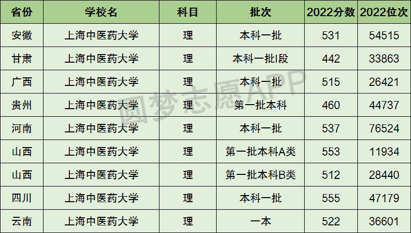 1、上海中医药大学在全国普通高考省份的【理科】招录数据,包含招生批次等信息: