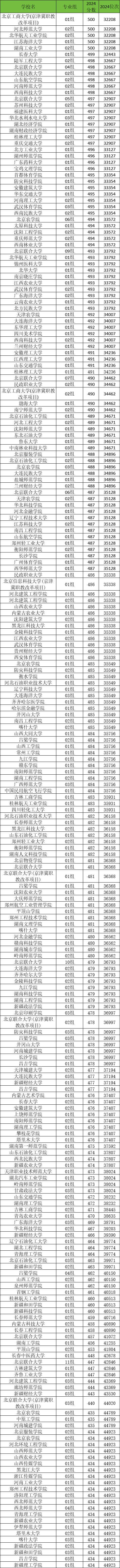 2024年在北京招生的所有公办大学中,400-500分左右的本科院校有下列这些:
