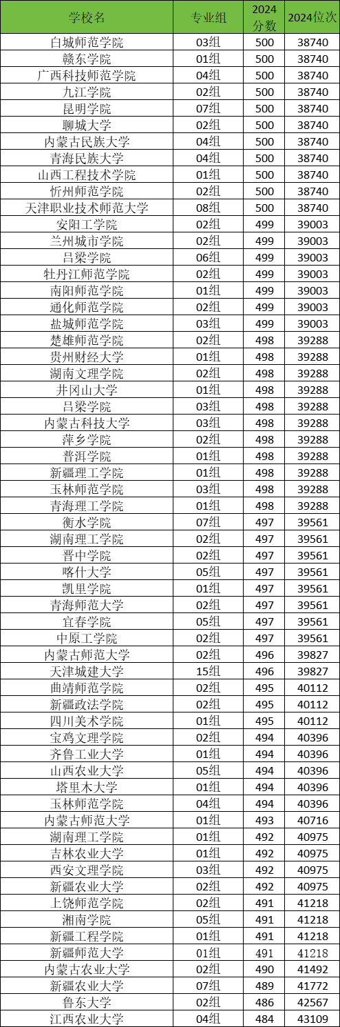 500分左右的几所: