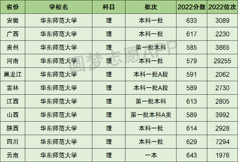 2、华东师范大学在全国普通高考省份的【理科】招录数据,包含招生批次等信息: