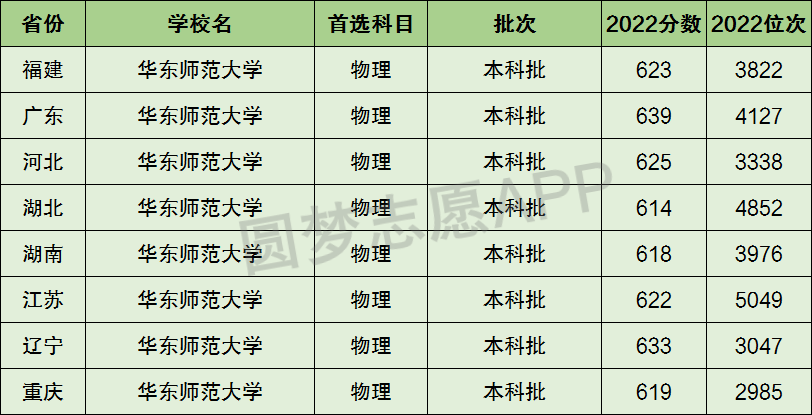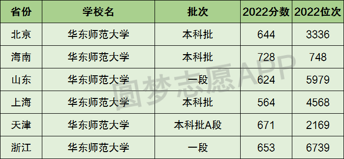 下面圆梦志愿将为大家展示华东师范大学2022年在全国各省市的最低分数线和位次,大家可以在了解华东师范大学在全国各省详细招生批次的同时,也顺便看看华东师范大学的招生录取分数线是多少!