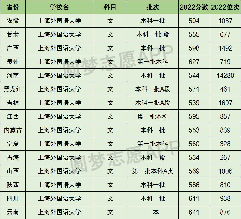 1、上海外国语大学在全国普通高考省份的【文科】招录数据,包含招生批次等信息: