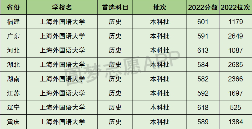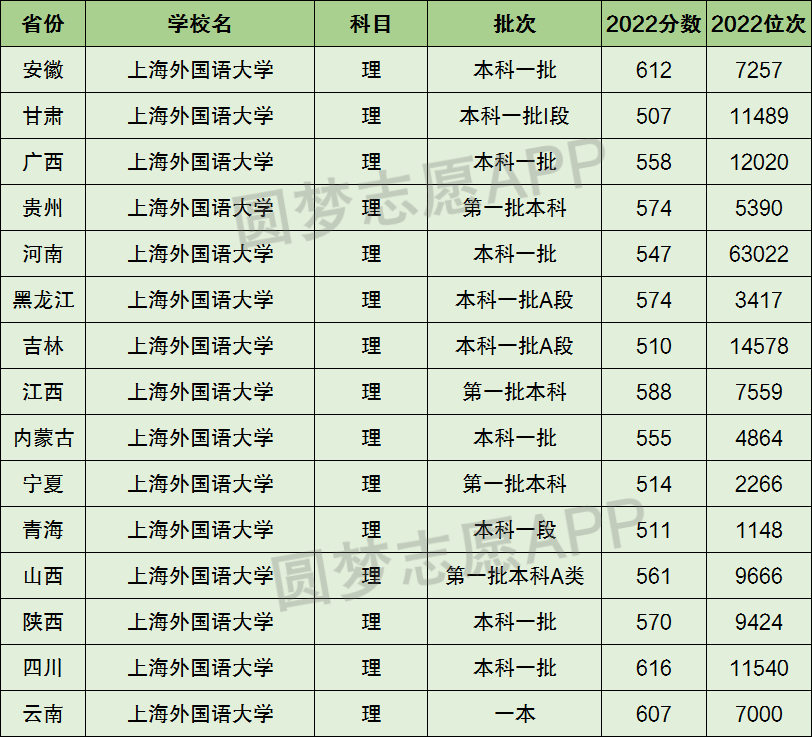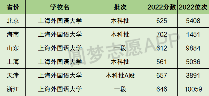 下面圆梦志愿将为大家展示上海外国语大学2022年在全国各省市的最低分数线和位次,大家可以在了解上海外国语大学在全国各省详细招生批次的同时,也顺便看看上海外国语大学的招生录取分数线是多少!