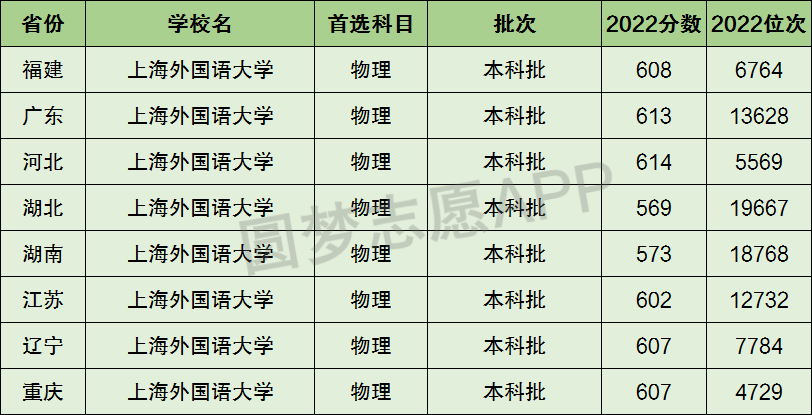 5、上海外国语大学在3+1+2新高考省份【首选物理】的招录数据,招生批次为本科批: