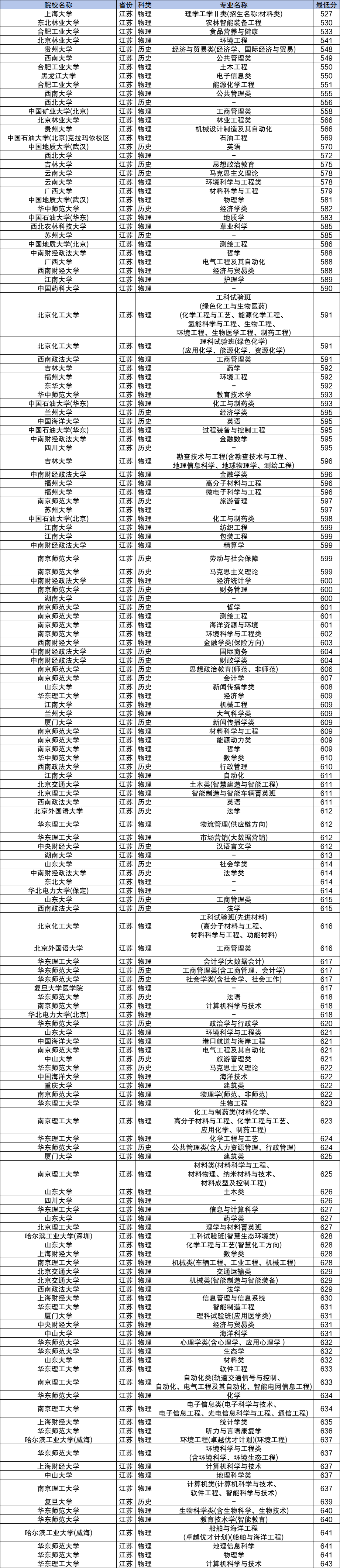 以华东理工大学为例,物理类各个专业最低分数线如下:
