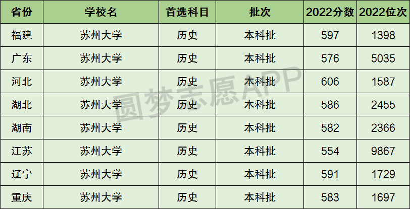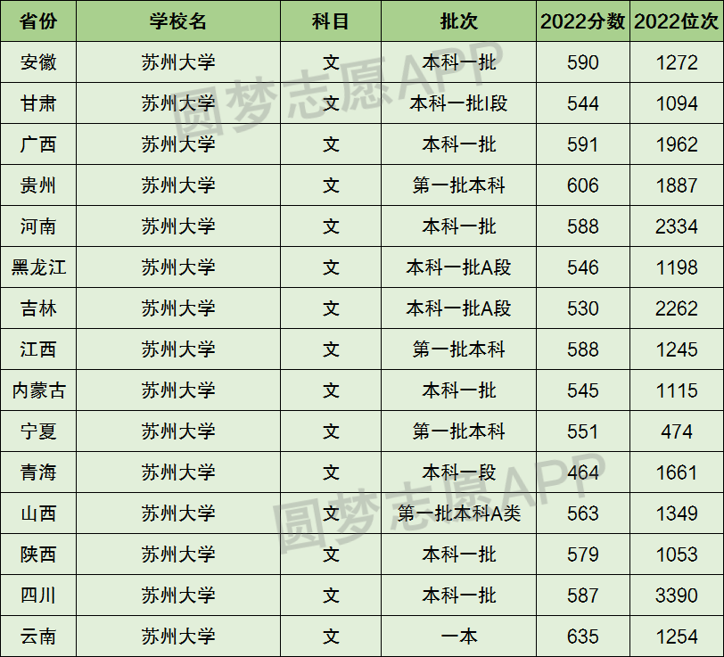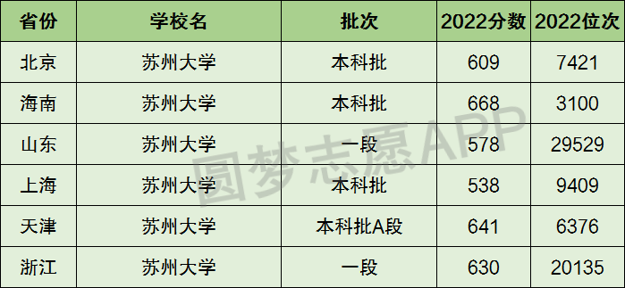 下面圆梦志愿将为大家展示苏州大学2022年在全国各省市的最低分数线和位次,大家可以在了解苏州大学在全国各省详细招生批次的同时,也顺便看看苏州大学的招生录取分数线是多少!