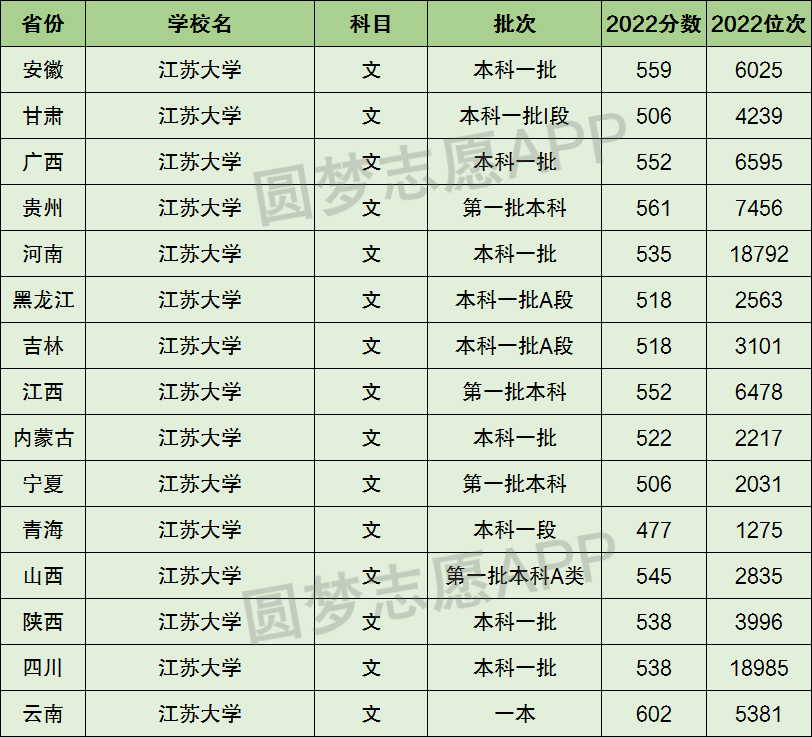 1、江苏大学在全国普通高考省份的【文科】招录数据,包含招生批次等信息: